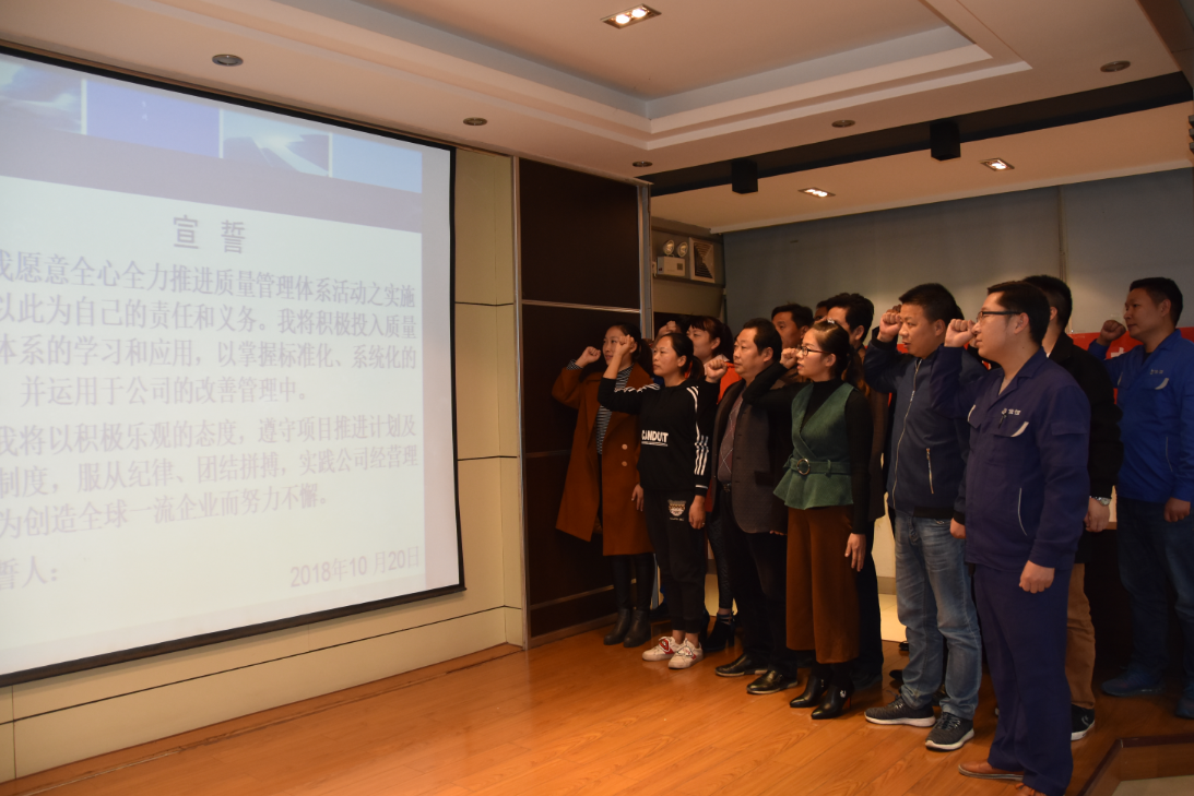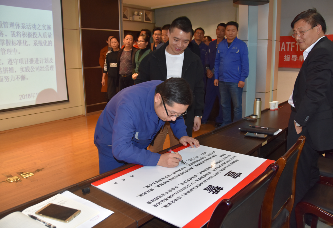 會上,質(zhì)量管理體系推進小組成員進行了集體宣誓并現(xiàn)場簽名,充分展示了開展《質(zhì)量管理體系提升》項目工作的決心。相信在公司上下一心、積極努力下,湖北佳恒科技股份有限公司一定能真正實現(xiàn)質(zhì)量管理體系提升,將IATF16949:2016質(zhì)量管理體系在企業(yè)內(nèi)部有效運行,為企業(yè)持續(xù)健康發(fā)展保駕護航!